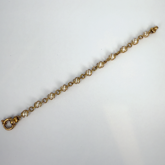 9K Yellow Gold Bracelet with Freshwater Pearl and Twisted Wire Design